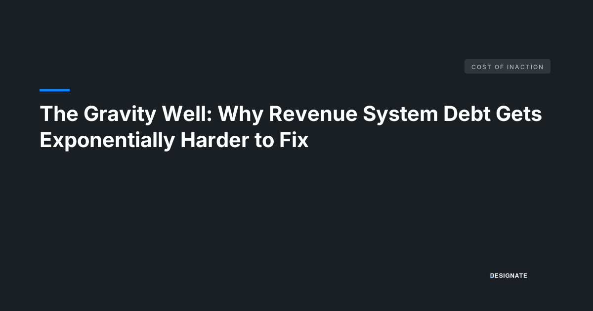 There’s a concept in physics called a gravity well — the deeper you fall into one, the more energy it takes to escape. Revenue system debt works the same way.